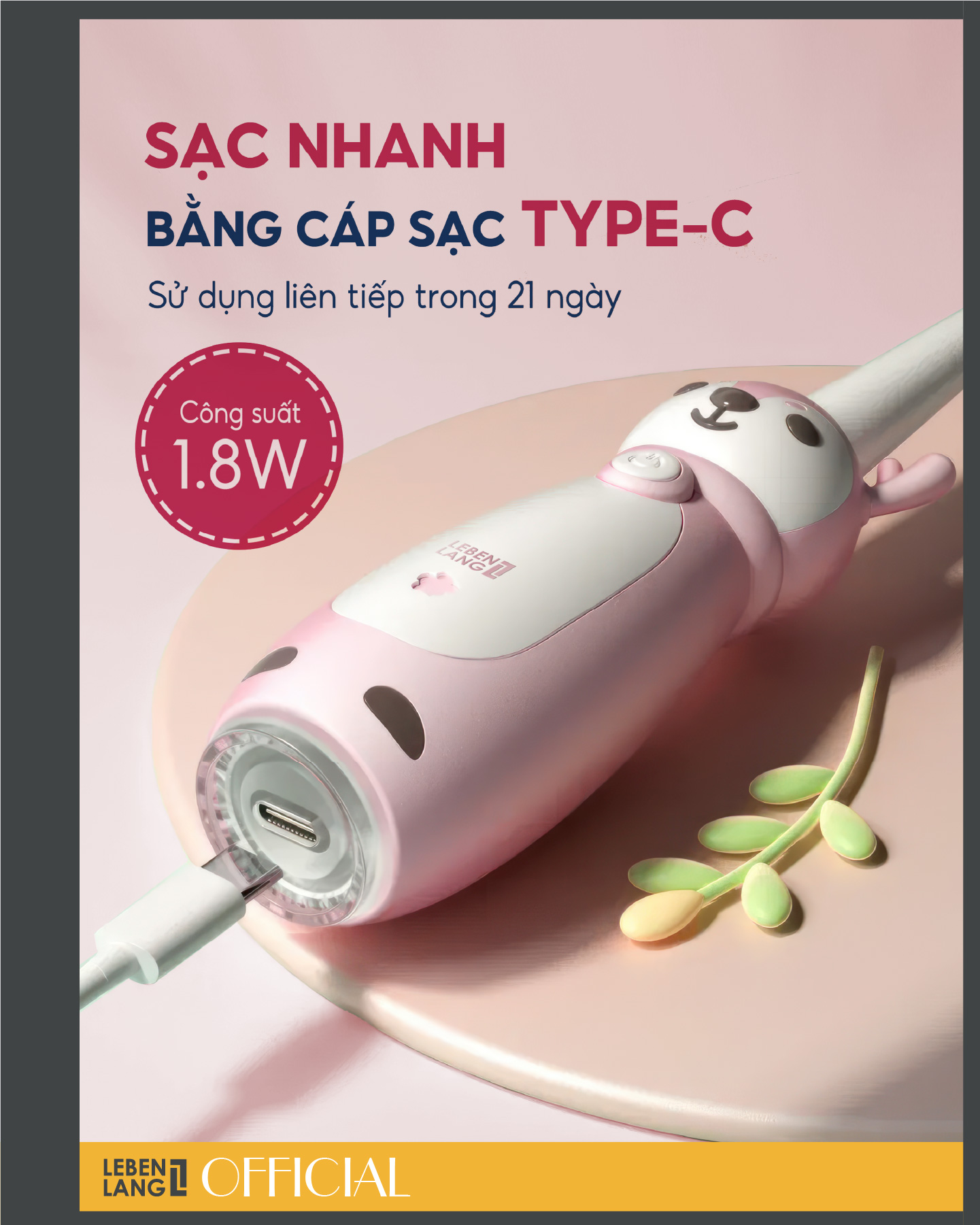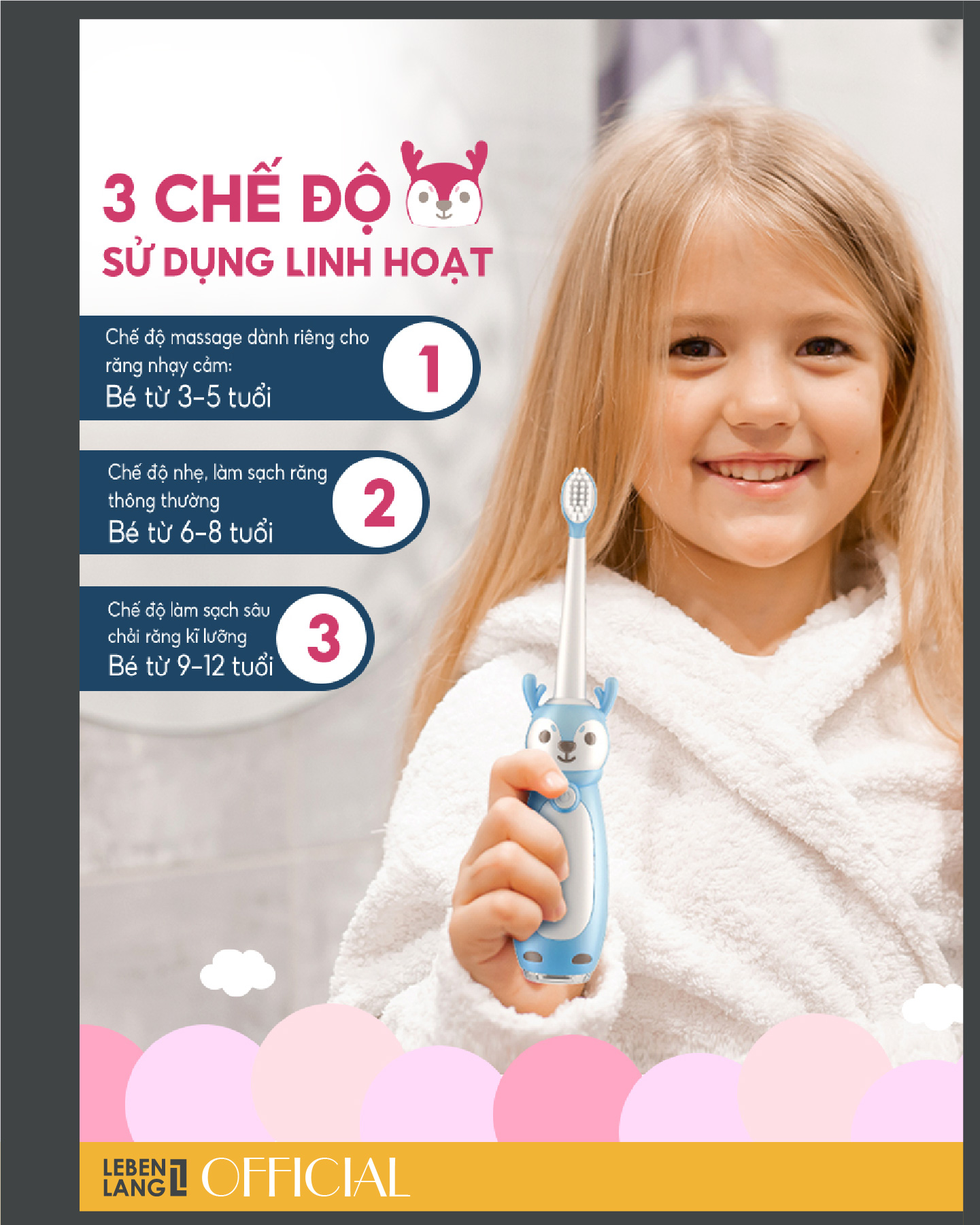 LBL3021-Bàn chải điện thông minh cho bé Lebenlang chống nước IPX7, 3 chế độ